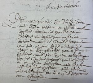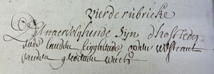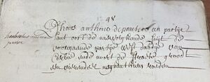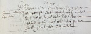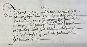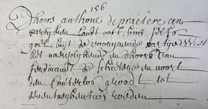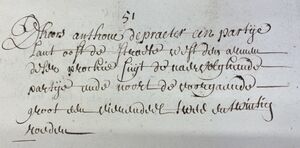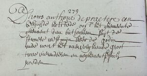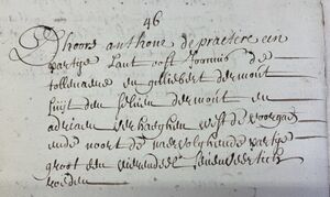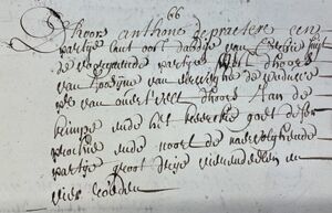 Dhoors Anthone Depraeter een partije lant oost die straethe, west den a? deser prochie, suijt de naervolghende partij ende noort de voorgaende. Groot een vierendeel tweeëntwintig rouden.